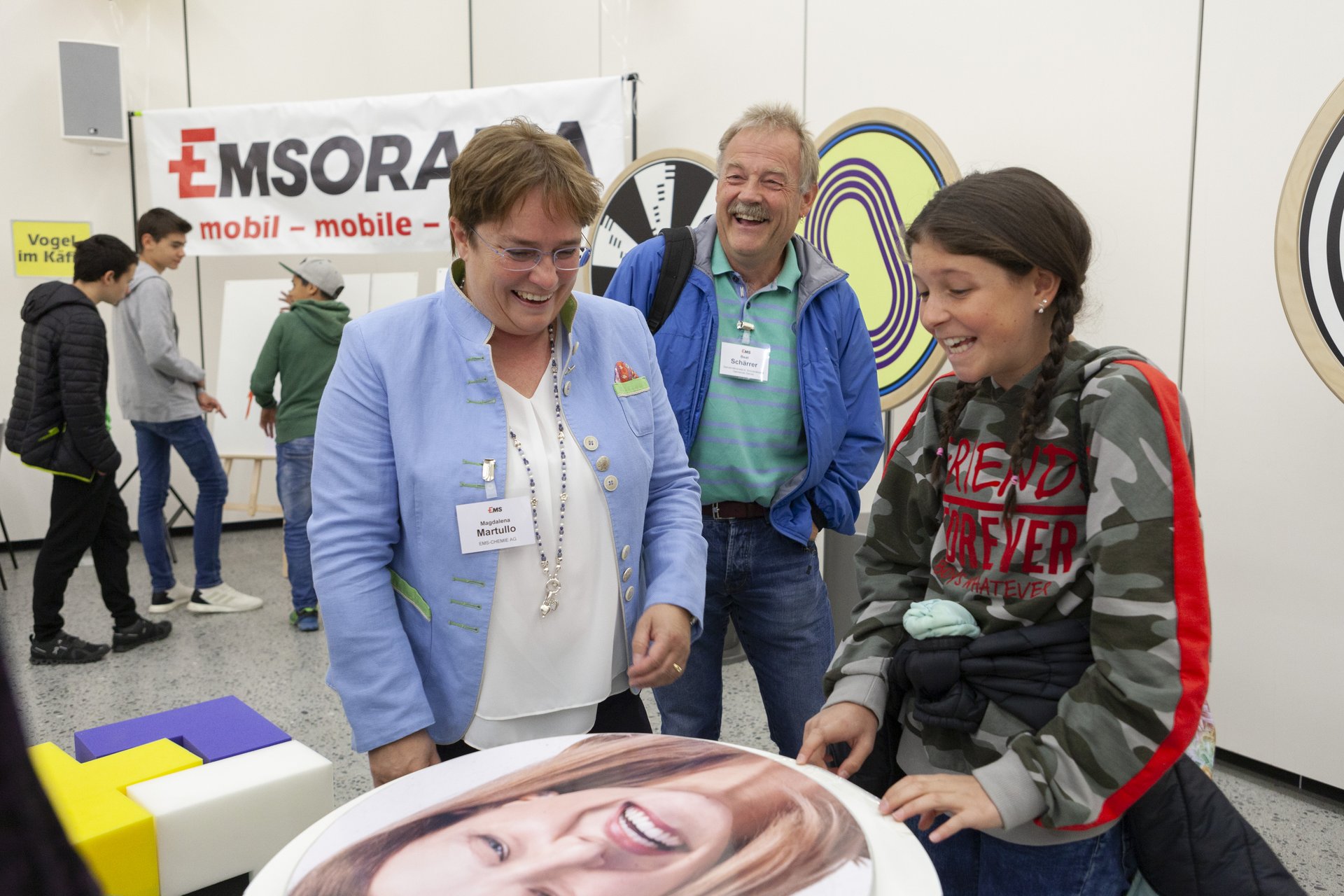 Die hochrangigen Gemeindevertreter und die Lehrer liessen sich anschliessend gleich zusammen mit den Oberstufenschülern selber spielerisch auf die Experimente ein. Am Freitag, 20. September 2019, wird das EMSORAMA Mobil von allen Zernezer Schulklassen besucht. Am Samstag, 21. September 2019, 09.00 bis 16.00 Uhr, ist es für alle frei zugänglich. Auf der Internetseite www.emsorama.ch sind unter der Rubrik "EMSORAMA Mobil" Bilder zu den vergangenen Ausstellungen und weitere Informationen zu den Exponaten und Terminen abrufbar.