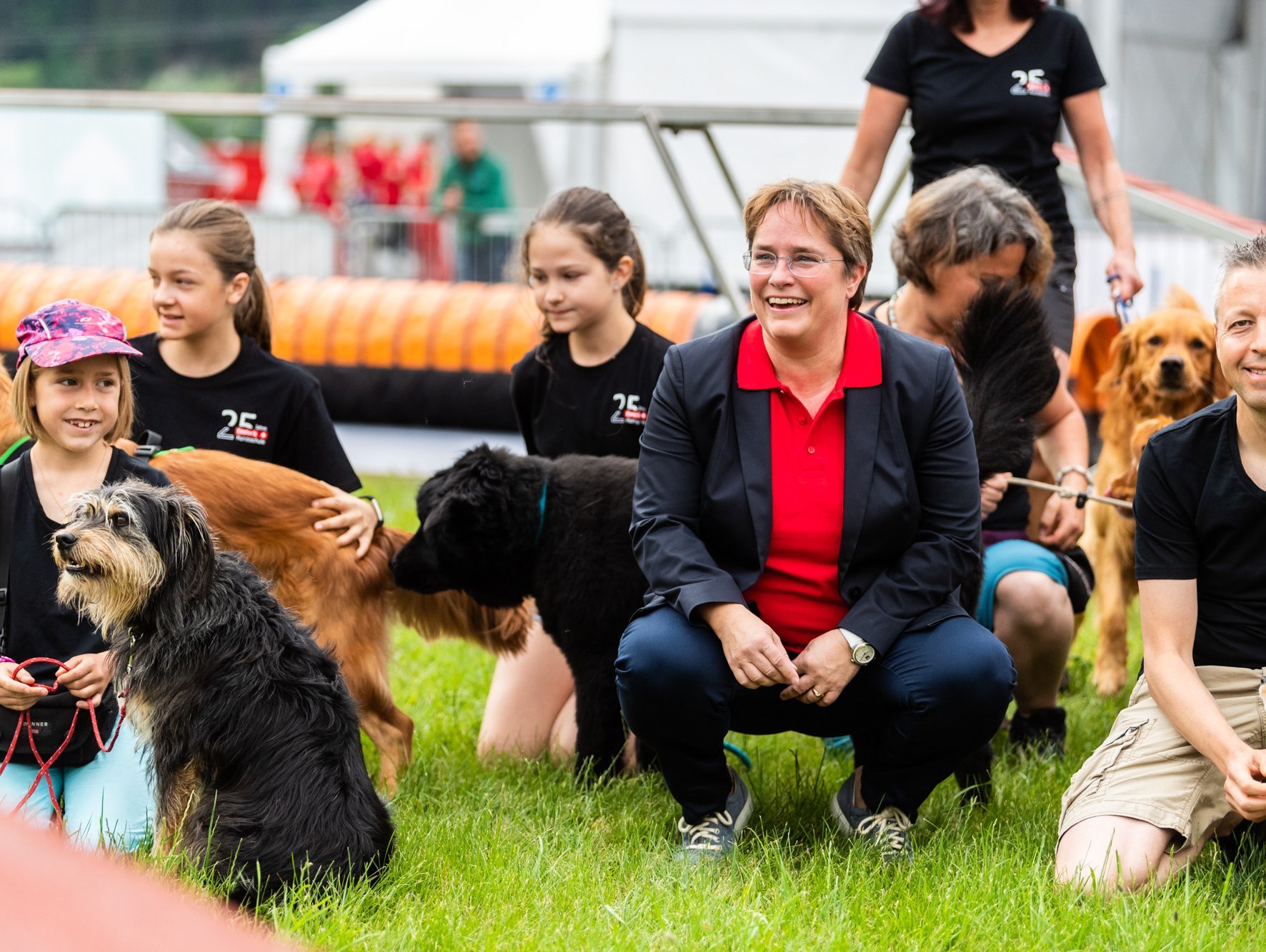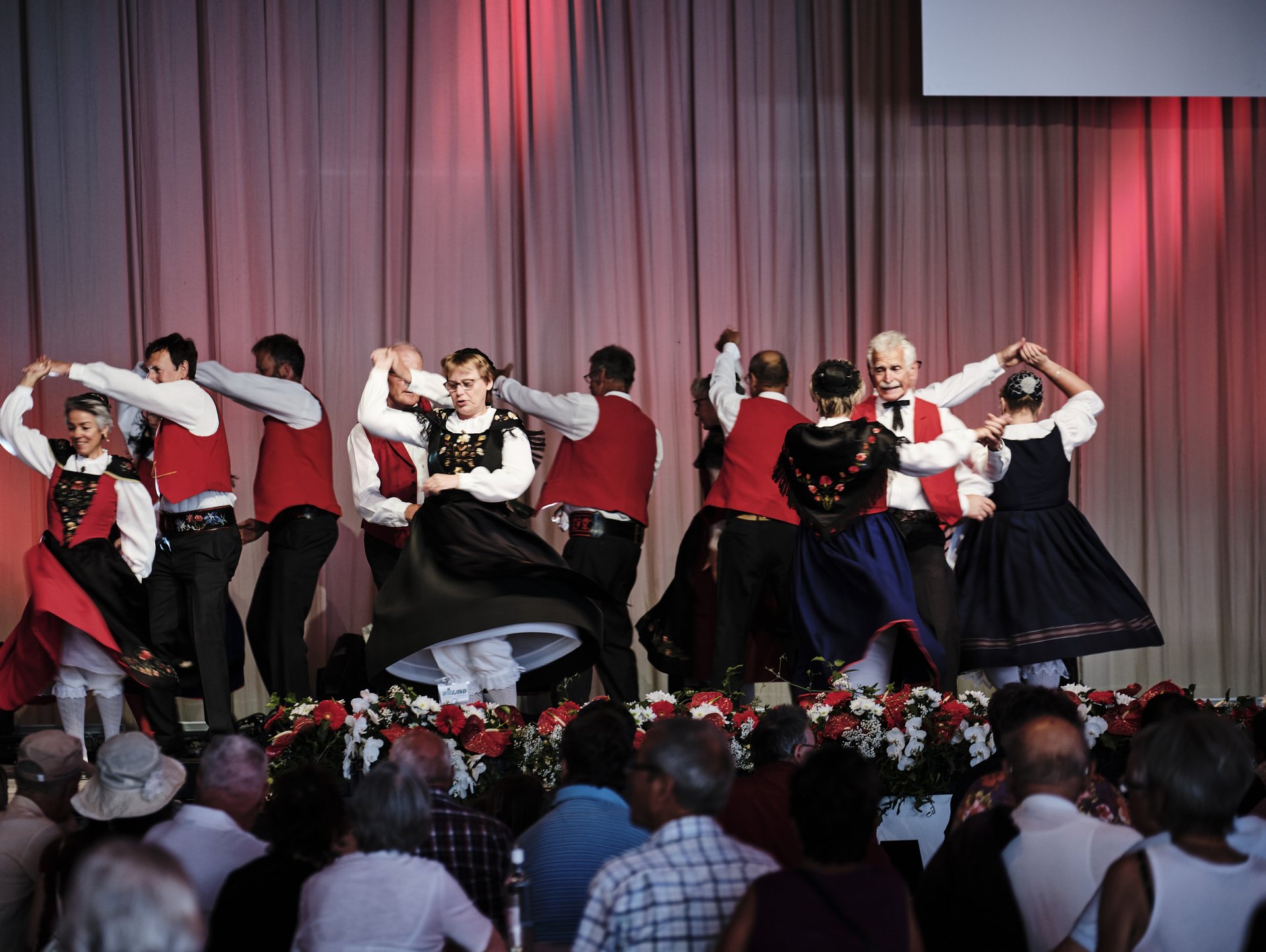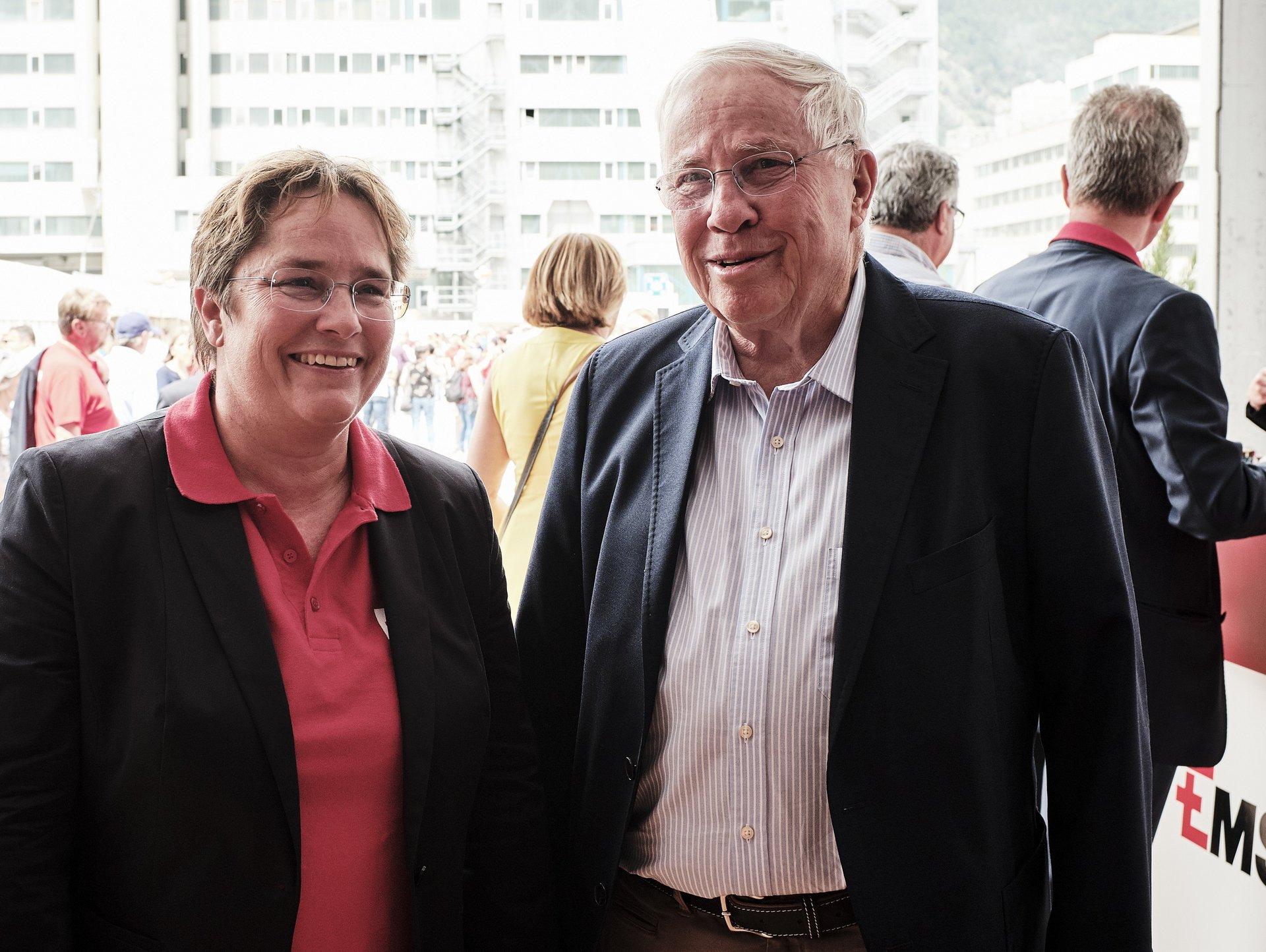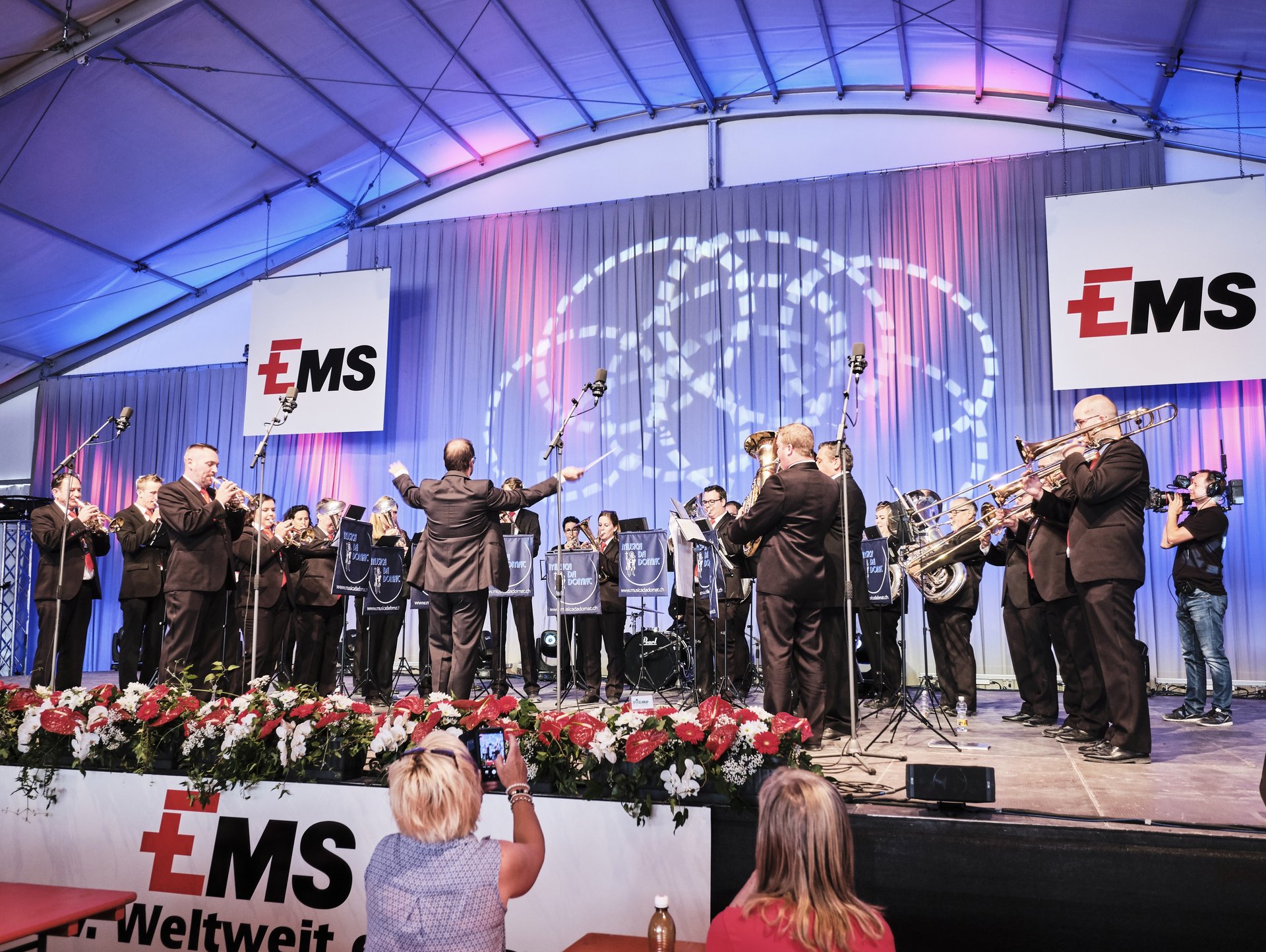 Nach dem Motto "aus der Region für die Region" wurde den Besuchern schliesslich auf dem grossen Festplatz vielfältige Unterhaltung aus Graubünden geboten: Im Festzelt heizte die 15-jährige Kübliserin Vanessa T. mit ihrer Power-Stimme den gut gelaunten Festbesuchern ein. Die Trachtengruppe Ilanz und Umgebung liess mit ihren farbenfrohen Trachten und lüpfigen Volkstänzen ein Stück echte Bündner Tradition aufleben. Estis Linedancers aus der Lenzerheide und die Steelband steel4ever aus Davos erweiterten das musikalische Spektrum und sorgten ihrerseits für Stimmung. Auch die Prominenz fehlte nicht: Die höchste Bündnerin, Standespräsidentin Tina Gartmann-Albin, Regierungspräsident Jon Domenic Parolini und Regierungsrat Mario Cavigelli sowie der Domat/Emser Gemeindepräsident Erich Kohler massen sich in einem freundschaftlichen Gewichtschätz-Wettbewerb mit Alt-Bundesrat und EMS-Ehrenpatron Christoph Blocher, EMS-Verwaltungsratspräsident Ulf Berg und mit der Bündner Nationalrätin und EMS-Chefin Magdalena Martullo. Mit Witz und viel Charme führten die beiden bekannten Moderatoren Sven Epiney und Annina Campell den ganzen Tag durch das reichhaltige Programm.