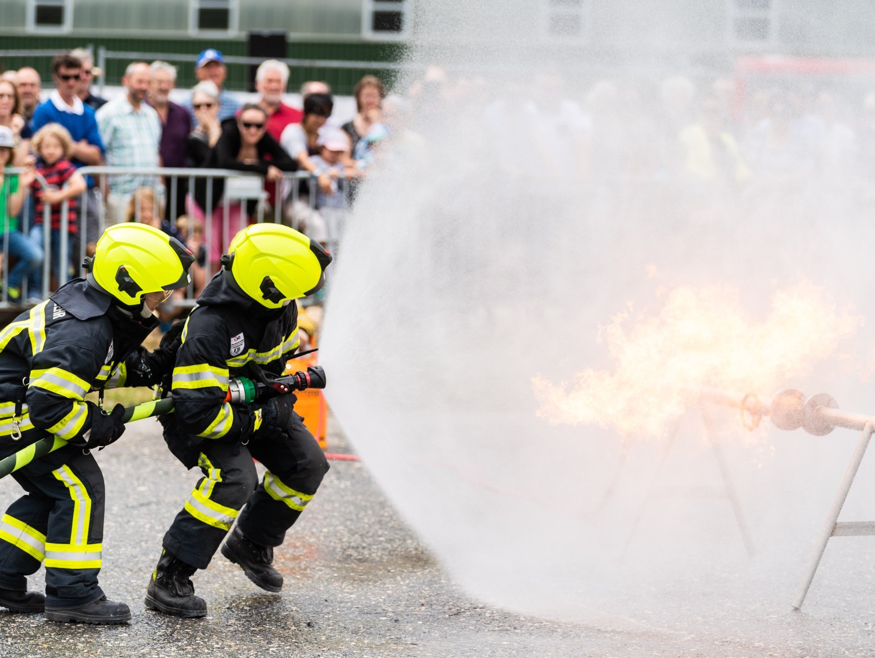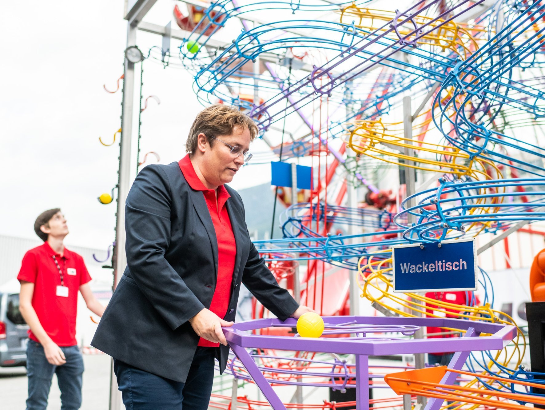 Dabei gab es durchaus auch viel zu erleben: Die werkeigene Feuerwehr präsentierte nicht nur ihre hochmodernen Löschfahrzeuge und Ausrüstungen, sondern zeigten ihr Können gleich in einer eindrücklichen Feuerwehrshow. Die sympathische Hundeshow zog nicht nur "Hündeler" in ihren Bann und der "Mungga-Trail" (die gigantische Kugelbahn mit über 120 Metern Länge und unzähligen Kurven, Loopings und Hebevorrichtungen – von EMS-Lernenden eigens für diesen Tag entwickelt) faszinierte nicht nur die vielen Kinder. Anziehungspunkte waren auch das 33 Meter hohe Nostalgieriesenrad mit Blick über den Werkplatz und die kurzweilige Rundfahrt durch das ganze EMS-Werk.