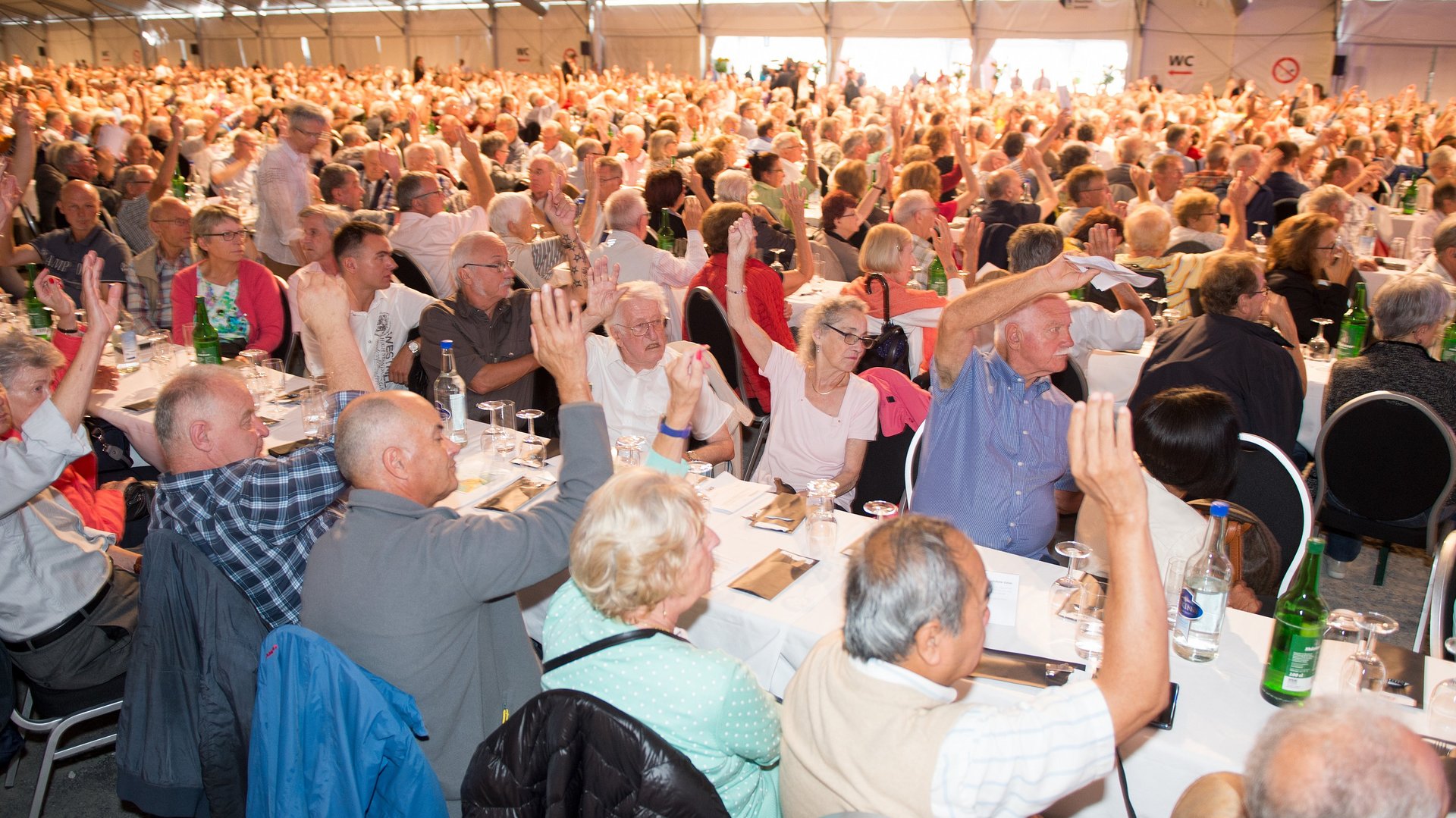56. Generalversammlung der EMS-CHEMIE HOLDING AG, fotografiert am 10.8.19. Bild Philipp Baer