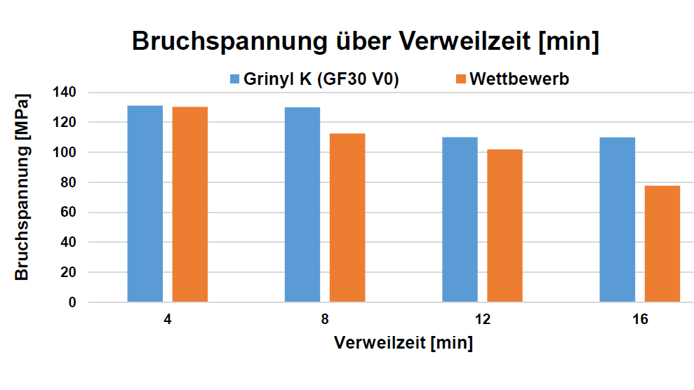 Die neuen Polyketone von EMS-GRIVORY bieten dank innovativer Technolgie ein deutlich breiteres Verarbeitungsfenster. Selbst bei längeren Verweilzeiten in der Schmelze bleibt die Viskosität stabil, was konstante mechanische Eigenschaften der Bauteile garantiert. Grinyl K Produkte überzeugen durch ihre leichte Fliessfähigkeit und eignen sich besonders für Anwendungen mit langen Fliesswegen oder komplexen Werkzeugen.