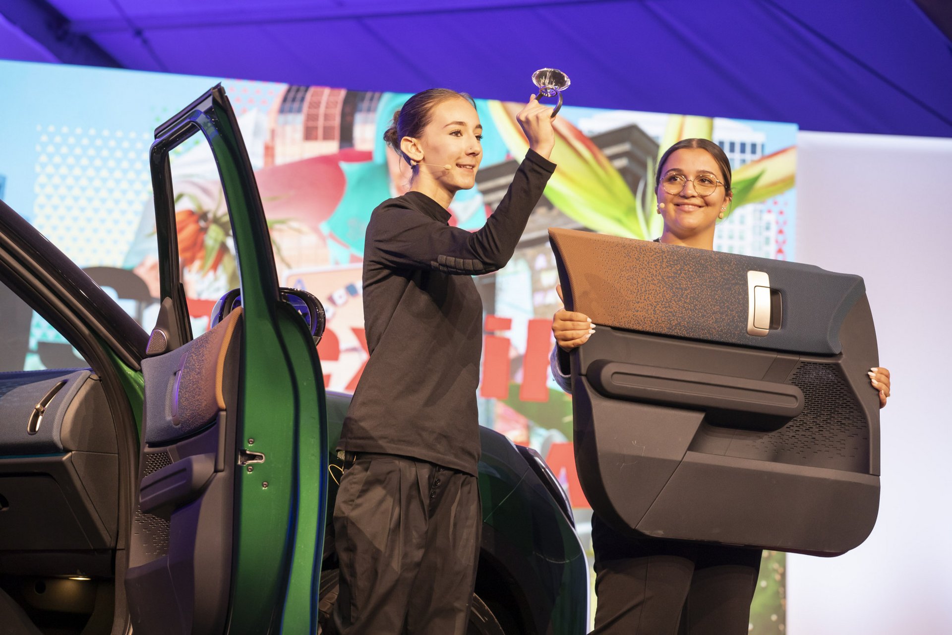 A spectacular fashion show presented a wide range of textile applications using EMS special adhesive yarns. These now also enable flat-knitted interior surfaces in cars - on the dashboard, door panels or in storage compartments of the center console. Seamless knitted coves can now be produced in one piece, in any conceivable three-dimensional shape, in all colors and knitting designs and without subsequent cutting or sewing.