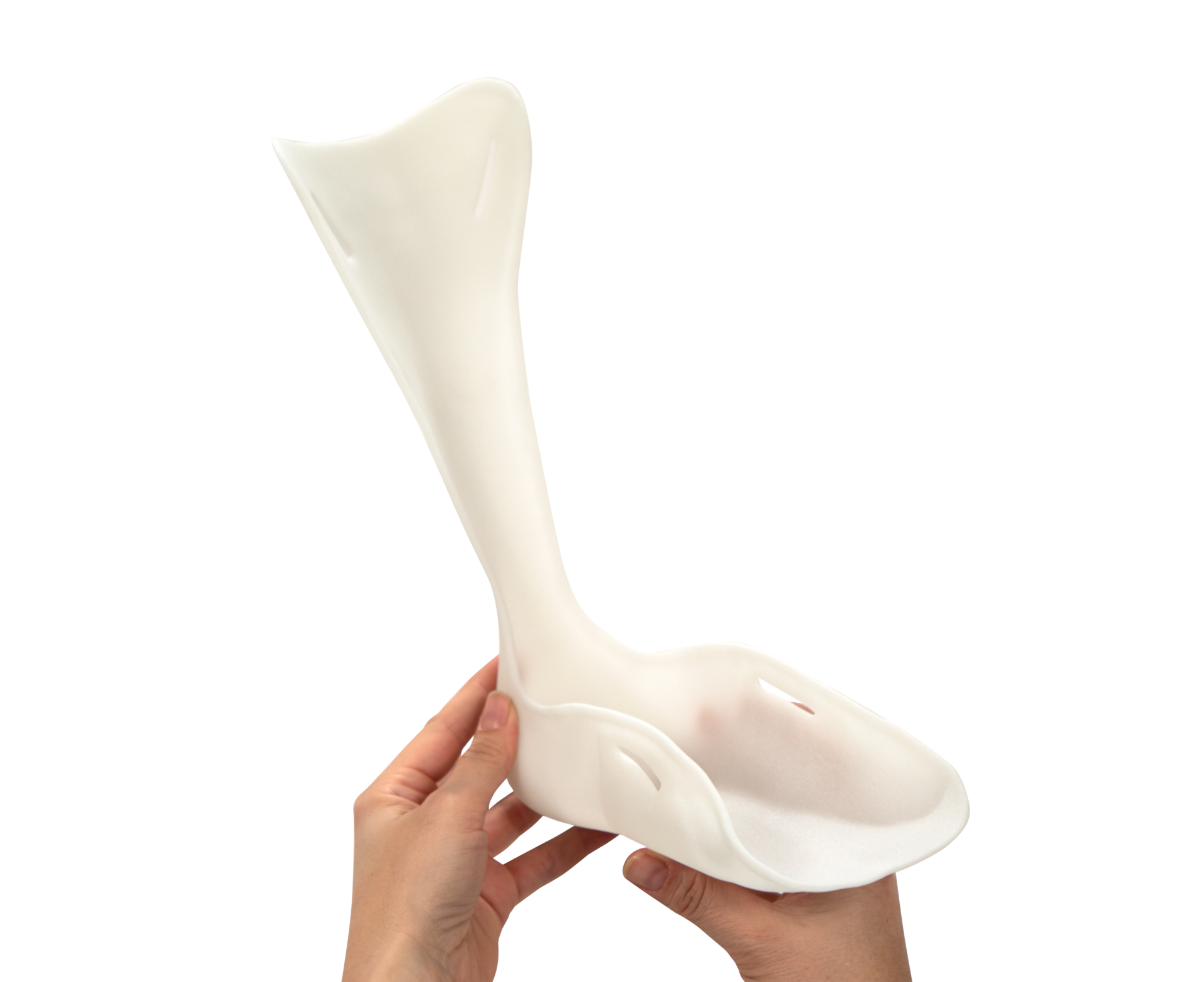 3D Systems is the exclusive distributor of this material which can be used to manufacture tough, lightweight, production-grade parts for applications such as orthotics, tooling handles, splints, and braces, ducting in rugged environments, living hinges, liquid reservoirs, and enclosures requiring high impact and high toughness. DuraForm PAx Natural is designed to print at a low temperature (i.e., 120°C) which facilitates efficiencies in both printing and post-processing. When compared to other nylon materials (i.e., PA-11 and PA-12), DuraForm PAx Natural enables significantly reduced time to parts-in-hand which not only helps service bureaus and manufacturers maintain their competitiveness but also helps accelerate supply chains. The low printing temperature of this material enables high throughput, and its designation as a clean running material results in low operator maintenance. With the lower printing temperature, parts can be ready to ship the day after an order is received. Similar PA12-based parts will need another day before a part is ready to be shipped.